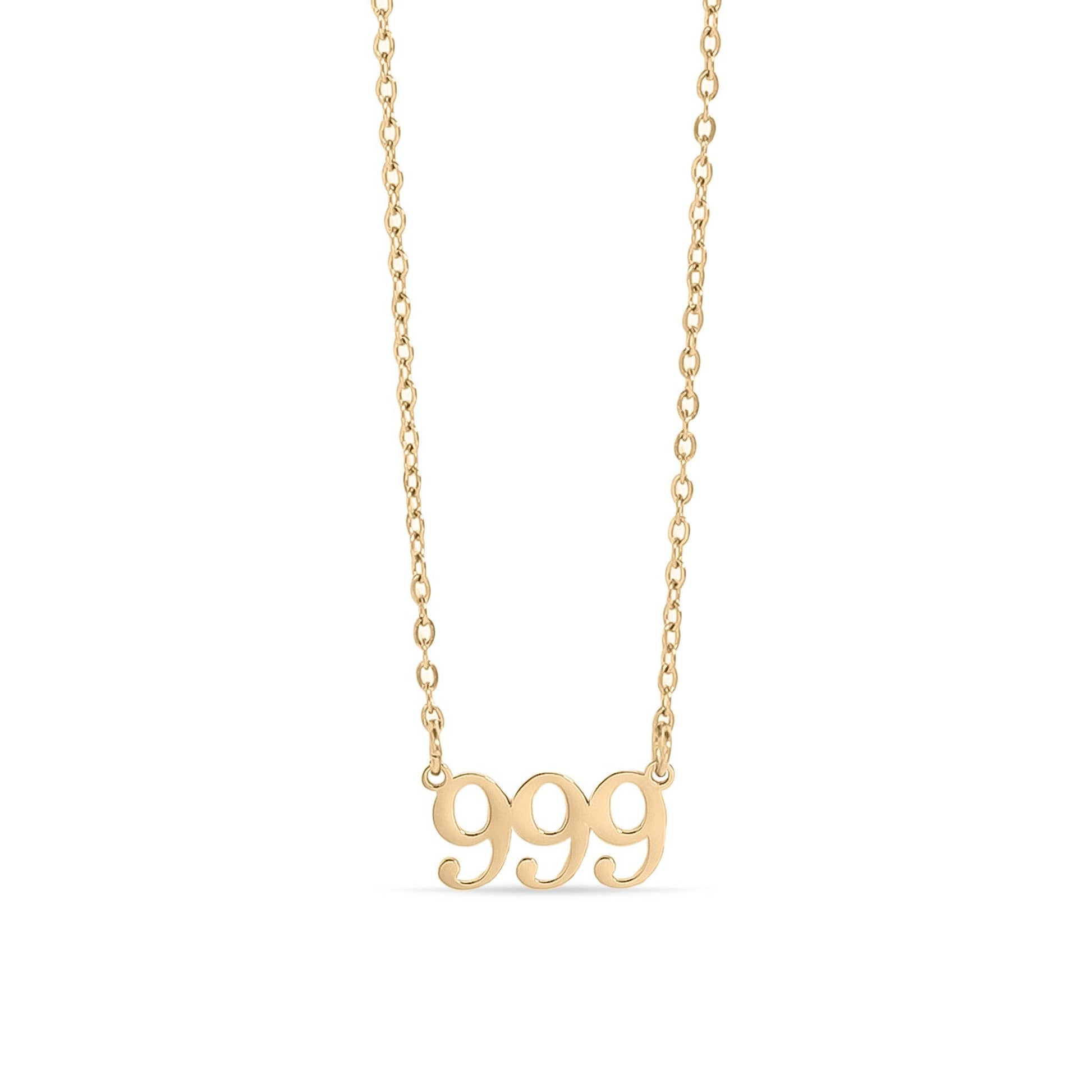 18K Gold PVD Stainless Steel Angel Number Necklace: Gold / 999
