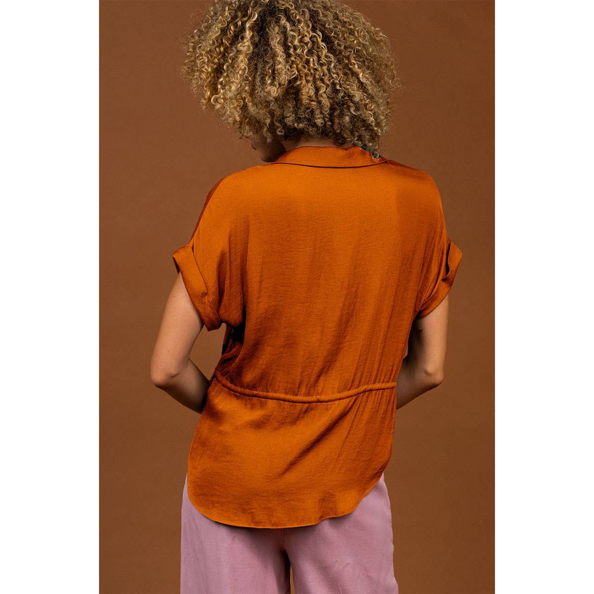 Slip into effortless elegance with this ginger-hued button-up shirt that's got serious versatility vibes. The built-in self belt cinches your silhouette just right, while the soft woven polyester keeps things comfortable all day long. Whether you're dressing it down with jeans or elevating your look for something more polished, this relaxed-yet-refined piece plays well with everything. It's the kind of shirt that makes getting dressed feel like a breeze—casual enough for everyday wear, put-together enough to turn heads at semi-dressy events. Your new go-to for looking intentionally chic without trying too hard.