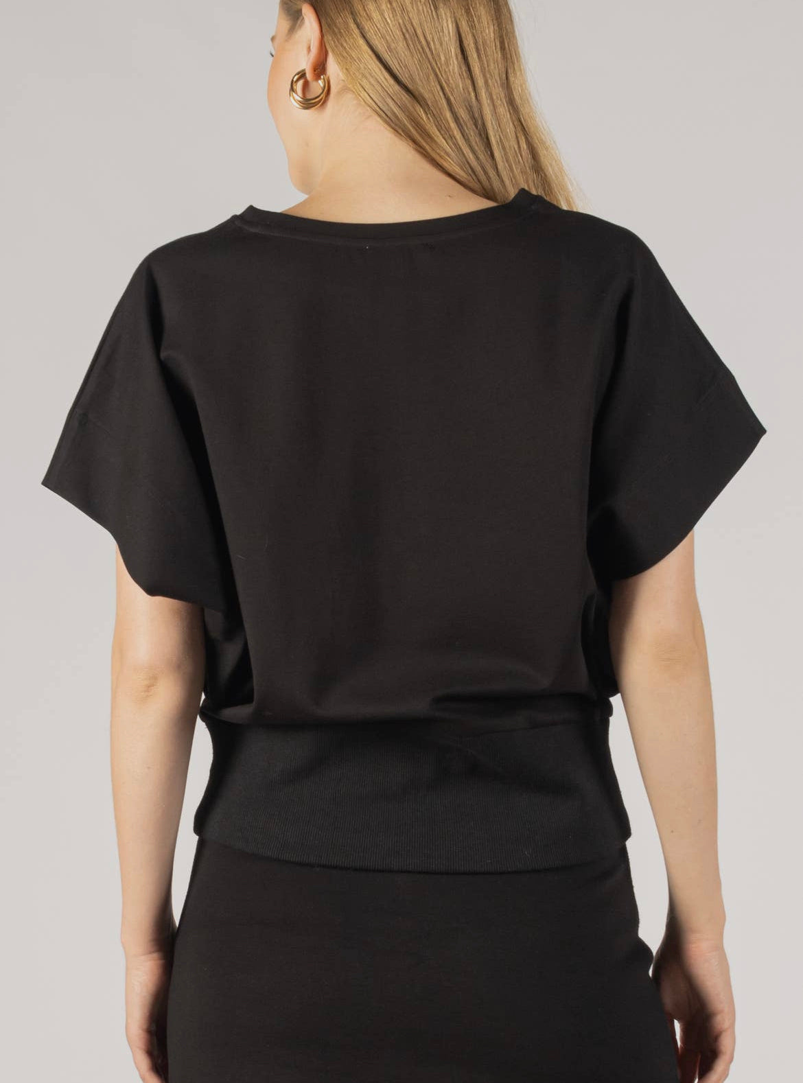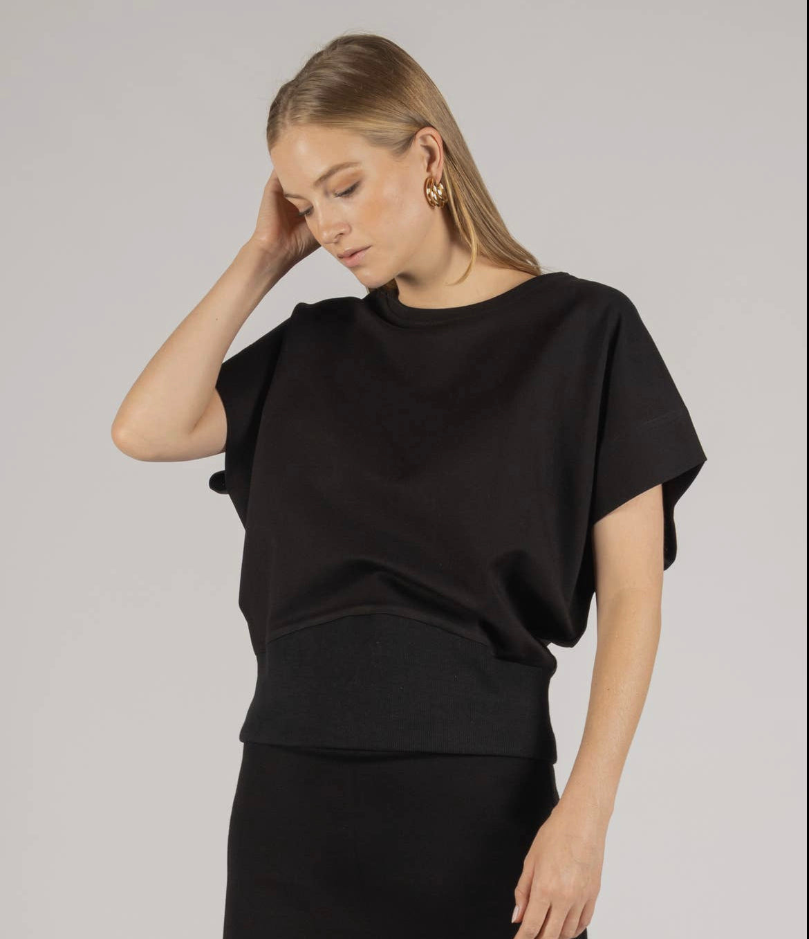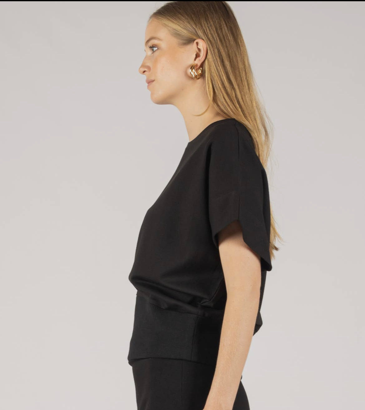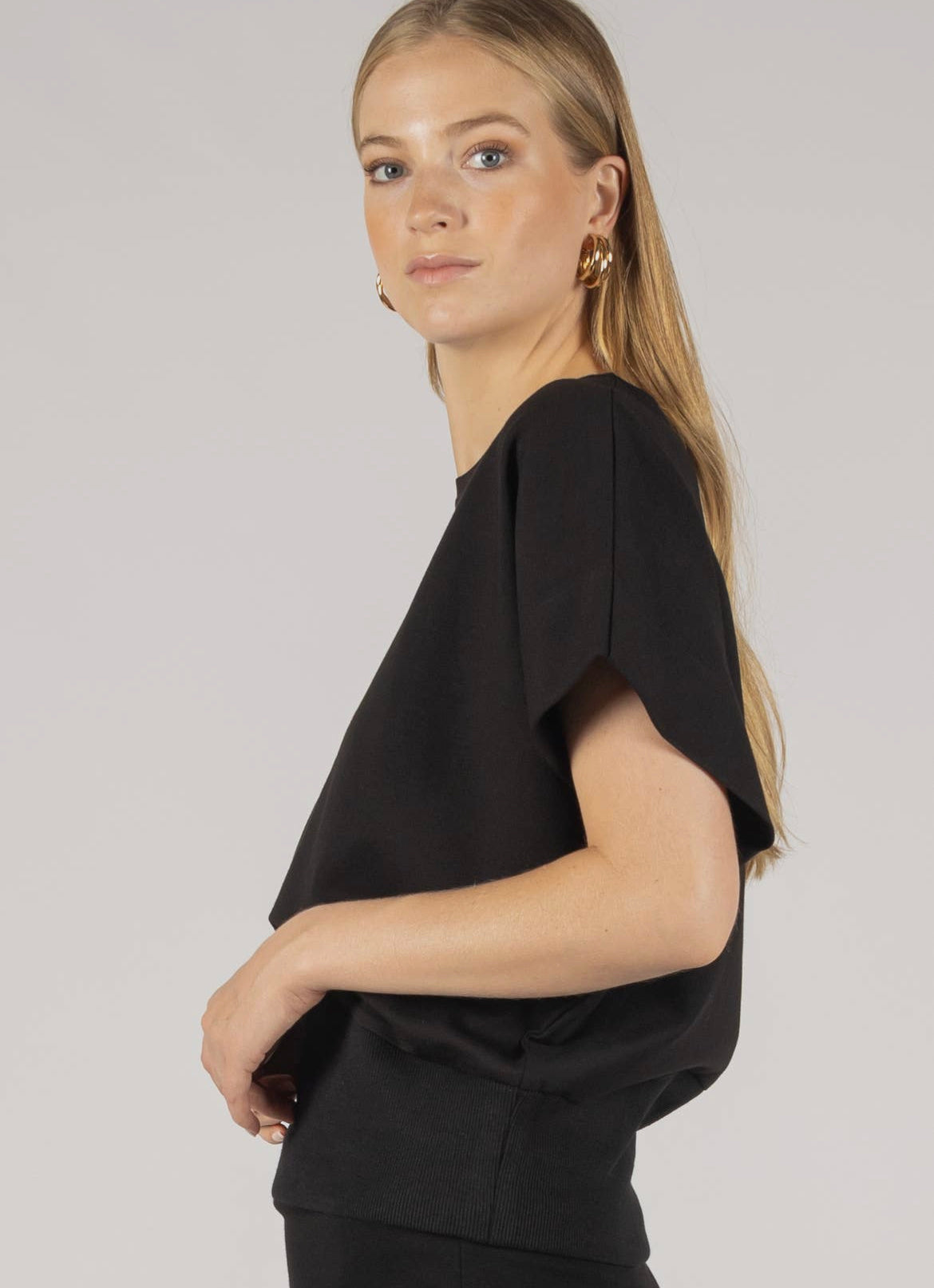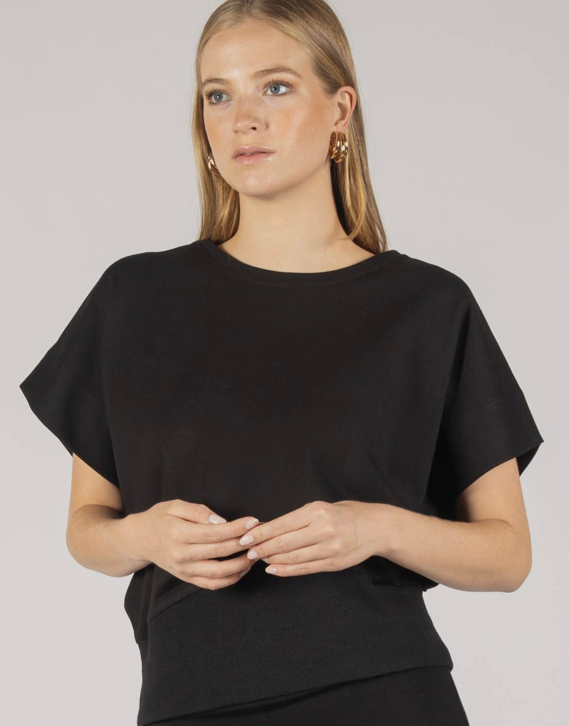 Bring a touch of femininity to your wardrobe with the Scuba Top. Its round neckline, fitted waistband and relaxed fit create a flattering silhouette, while its short-sleeved design keeps it comfy. Perfect for any occasion—from a night out with friends or a stroll through the park. 48% Modal | 48% Polyester | 4% Spandex